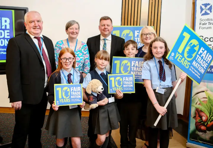 Pupils from St John the Baptist primary school, raise their voices in support of Fair Trade in Scotland and the impacts it can have on communities around the world.